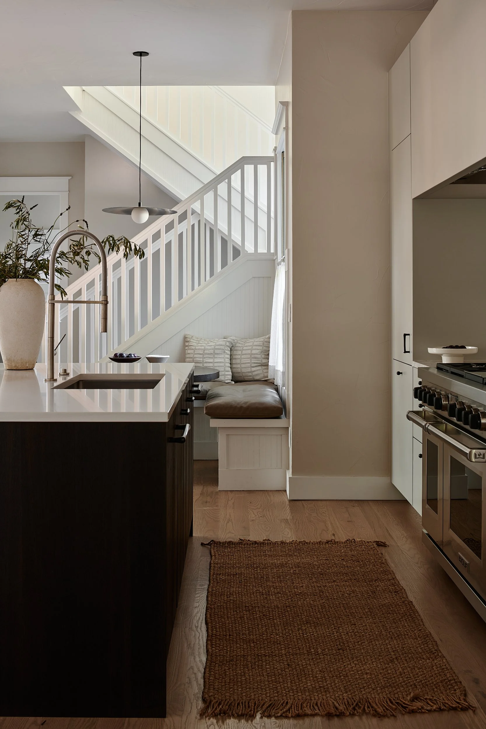 “We completely reconfigured the kitchen layout to improve the function for its young owners. The space went from dark and outdated to efficient, bright and inviting.”